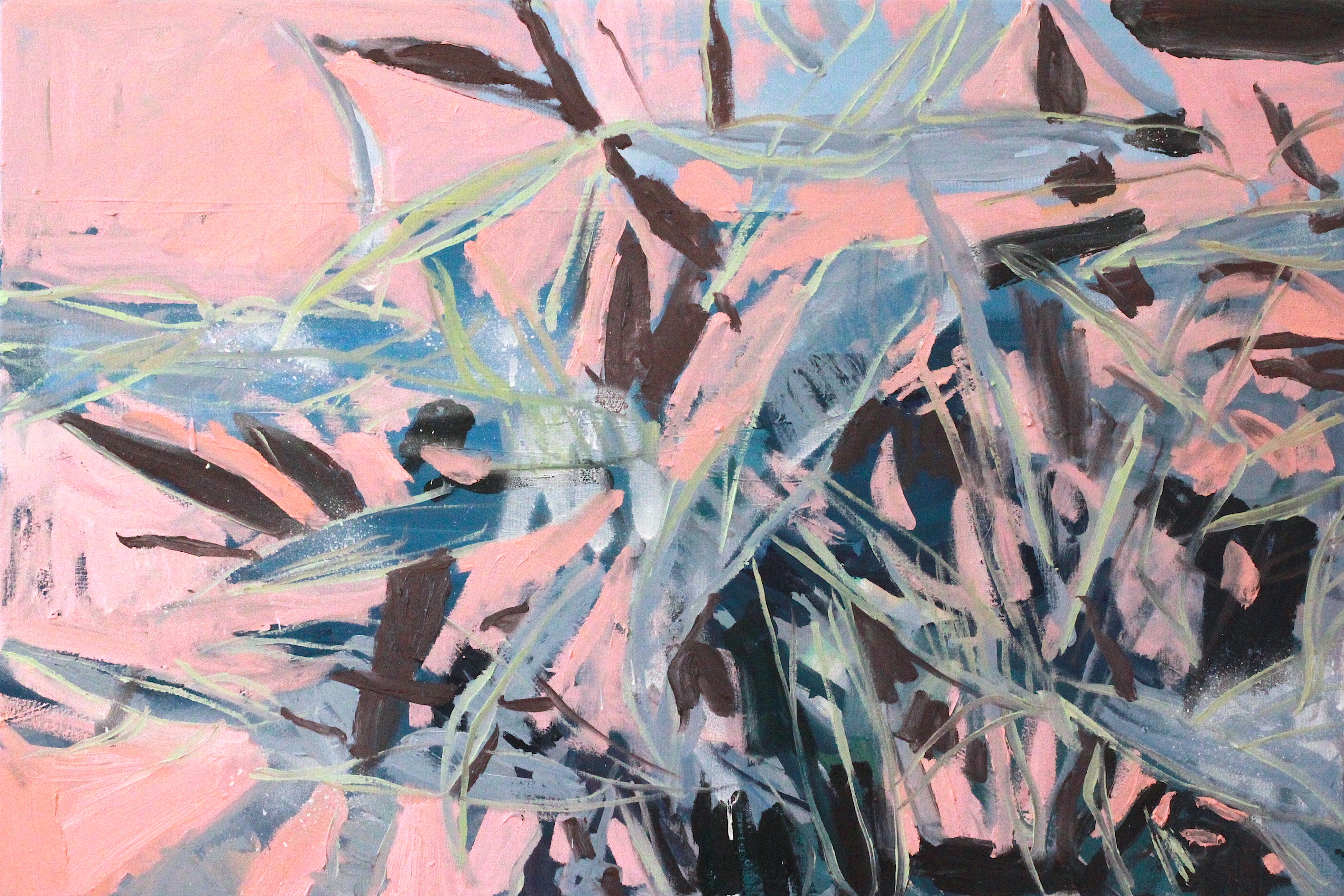 leaves and pink wall 24 x 36 in
